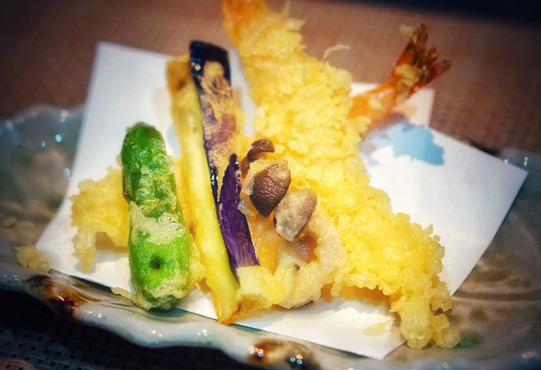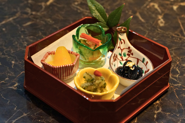 箱前菜、天ぷら、茶碗蒸し、蒸釜寿司、汁物