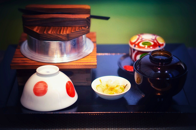 箱前菜、天ぷら、茶碗蒸し、蒸し釜飯、汁物